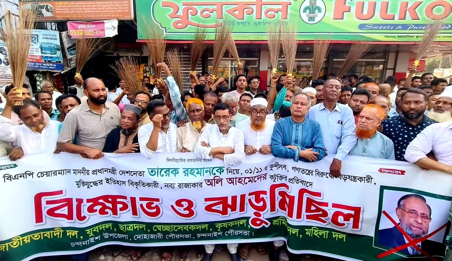 প্রধানমন্ত্রীকে নিয়ে কটূক্তি এবং স্বাধীনতার ইতিহাস বিকৃতির প্রতিবাদে চন্দনাইশে লিবারেল ডেমোক্রেটিক পার্টির (এলডিপি) সভাপতি কর্নেল (অব.) অলি আহমদের বিরুদ্ধে ঝাড়ু মিছিল করেছে উপজেলা বিএনপি ও তার অঙ্গ সংগঠন।