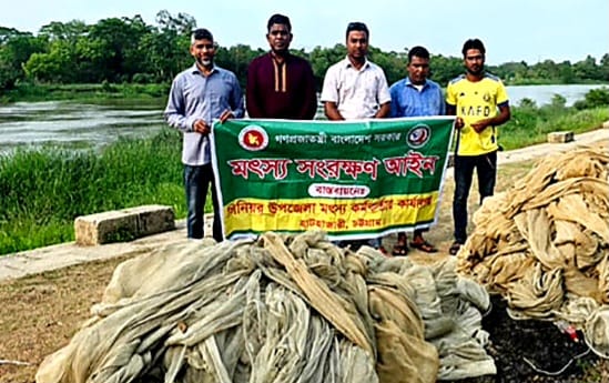 হাটহাজারীতে হালদা নদীতে অভিযানে অবৈধ জাল উদ্ধার