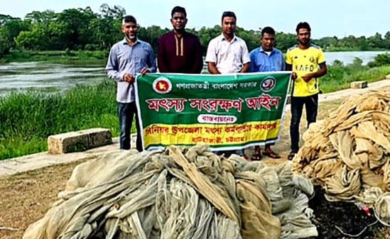 হাটহাজারীতে হালদা নদীতে অভিযানে অবৈধ জাল উদ্ধার